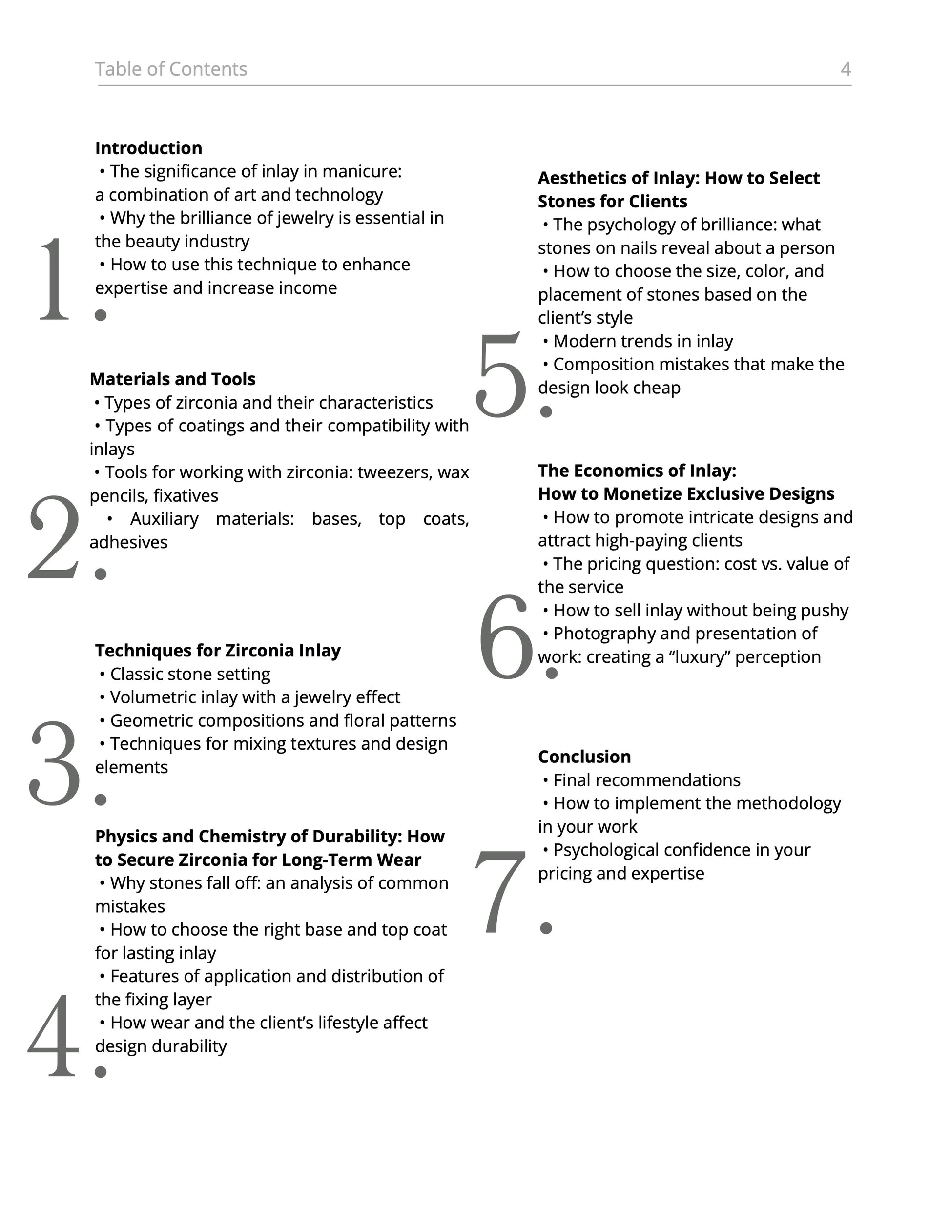✔ The psychology and aesthetics of inlays – selecting the right size, color, and placement of stones to match each client’s style.